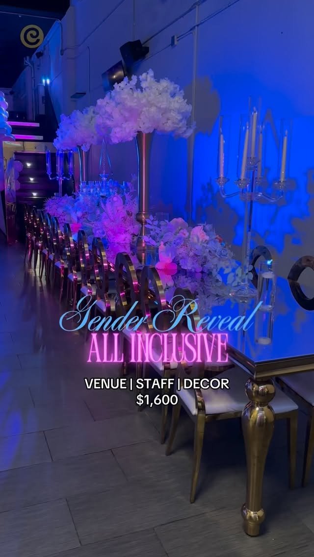 Your rental includes up to 8 total hours in the space, which covers both setup and event time. Staff support and full cleaning are included to ensure a seamless and enjoyable experience. Beautiful décor is included, with color options in pink, blue, white, red, black, gold, clear, or purple. You are welcome to personalize your day further by bringing your own preferred vendors.